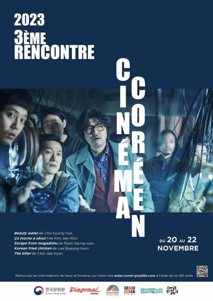 Au programme: Beauty water, Cobweb, Escape from mogadishu, Korean fried chicken, The Killer, Rencontre autour du livre les début cinéma en Corée, de KANG Chang Il